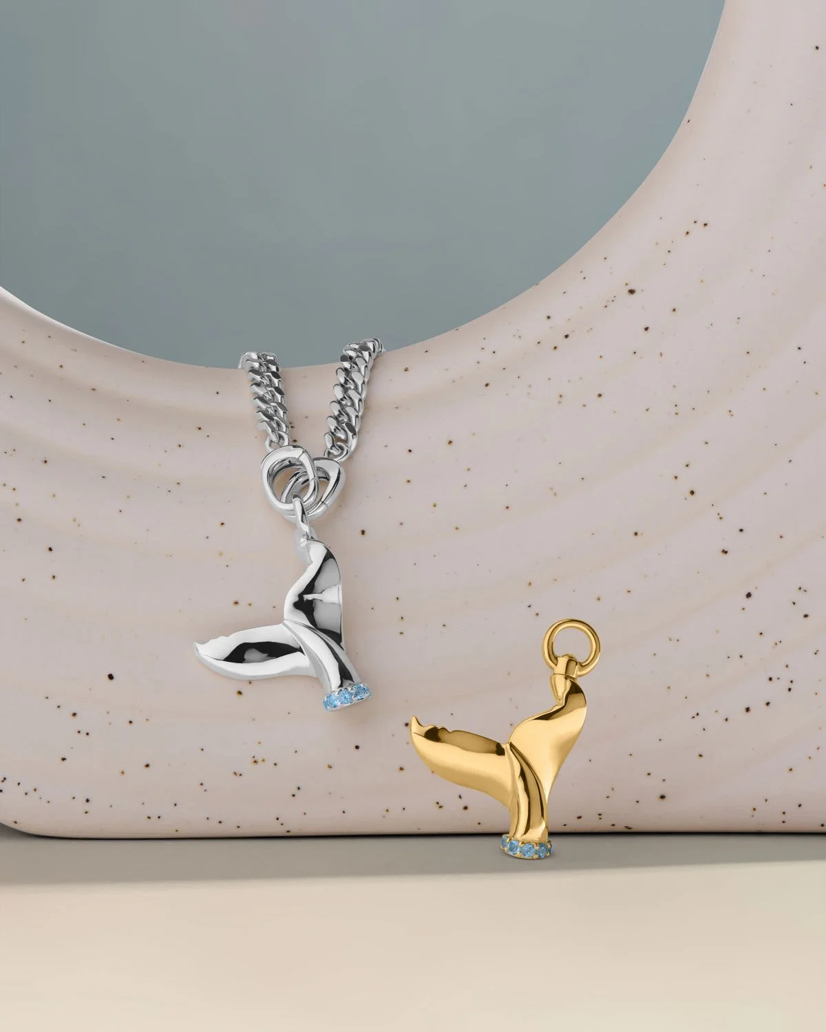 For Oni’s Whale Charm campaign, we were brought in to create original still life visuals that honored both the brand’s ritual-driven design language and its partnership with the Gotham Whale Foundation. We translated their art direction into a serene, sculptural set built around rippled ceramic forms and soft horizon gradients that echo sea, sky, and tide. By spotlighting the whale tail silhouette and its blue topaz accents with clean negative space, we delivered versatile hero images for ecommerce, storytelling pages, and campaign assets.